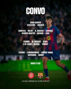 24ᵉ journée de La Liga : Girona FC reçoit FC Barcelone avec le retour de Raphinha