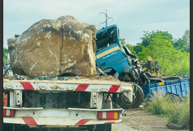 Deux camions sont entrés en collision à l’instant à Dan, une localité de la commune de Djidja, département du Zou au centre du Bénin. L’un des camions transportant des sacs du riz et l’autre des pierres.
