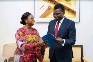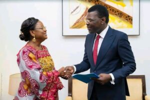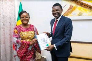 Le président de l’Assemblée nationale, Joseph Fifamin Djogbénou, a reçu dans la matinée de ce jeudi 5 mars 2026 la présidente de la Haute Cour de Justice du Bénin, la professeure Dandi Gnamou, au Palais des Gouverneurs à Porto-Novo. La visite, effectuée en compagnie d’une délégation, s’inscrit d’abord dans une démarche de courtoisie. La présidente de la Haute Cour de justice est venue présenter ses félicitations au président du Parlement béninois pour son élection à la tête de l’institution le 8 février dernier.