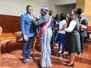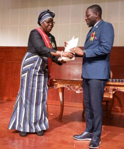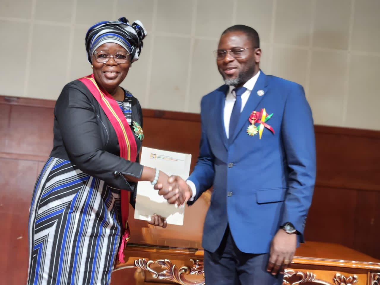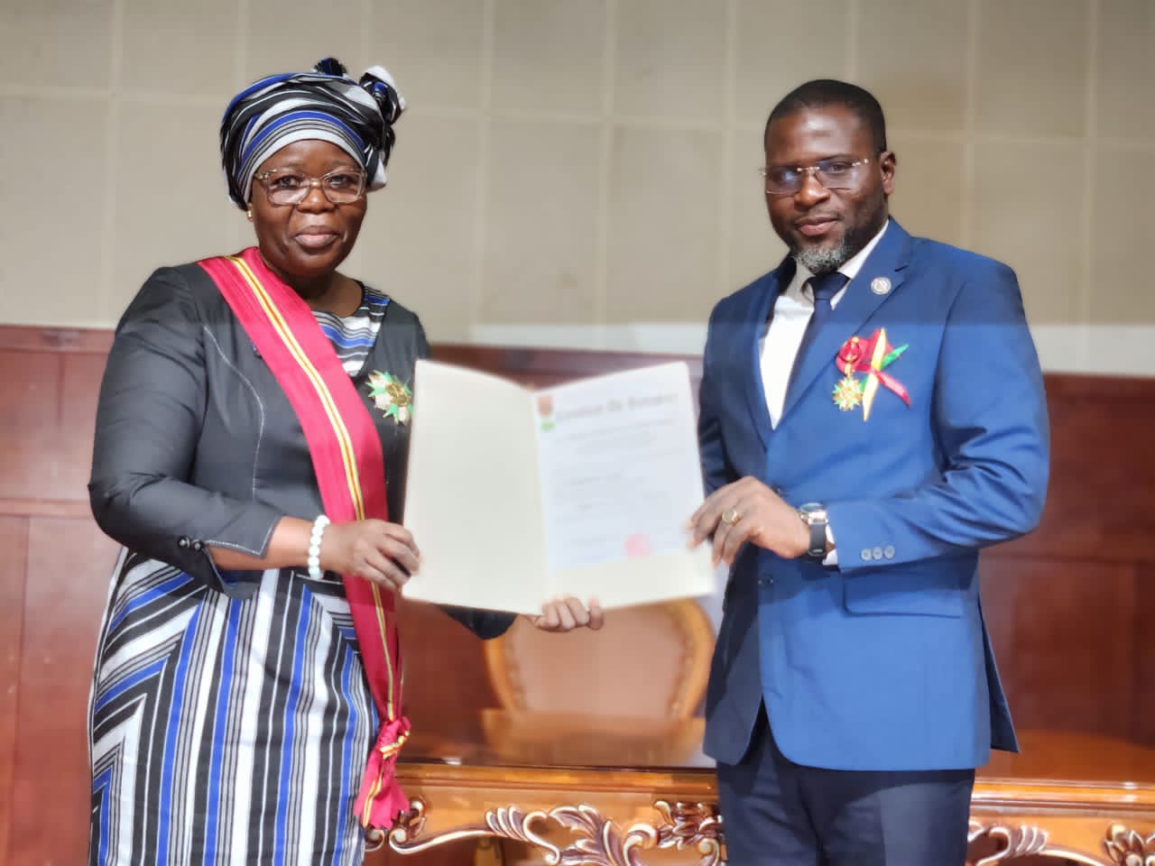 Cette distinction a été décernée à l’occasion de la cérémonie de décoration des maires de la mandature 2020–2025, en reconnaissance des services rendus à la Nation. Elle lui a été remise par Madame Mariam Chabi Talata Zimé Yerima, Vice-Présidente de la République et Grande Chancelière des Ordres Nationaux.