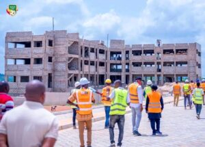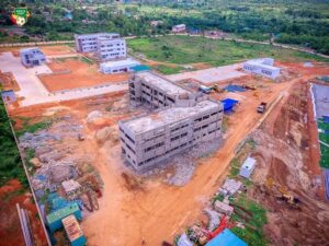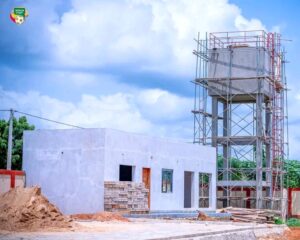 Le projet se déploie en deux phases. La première a porté sur la construction des dortoirs, du bloc administratif, ainsi que sur les travaux d’assainissement et de réseaux. La seconde phase, déjà engagée, concerne notamment l’édification du collège, l’aménagement des pelouses et la réalisation des gradins.
