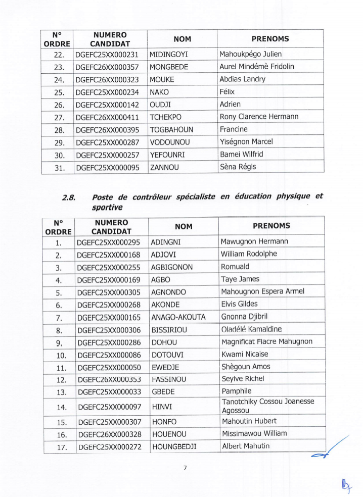Les candidats admissibles sont convoqués le samedi 21 février 2026 à 07 heures précises au CEG 1 de Bohicon, situé dans la ville de Bohicon. Ils devront se présenter en tenue de sport, munis d’une pièce d’identité valide.