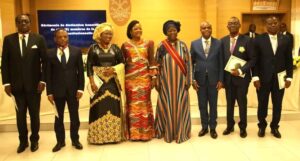À cet instant, les mots du poète et homme d’État Aimé Césaire raisonnent avec justesse. Je cite « Ce n’est pas un honneur personnel, mais c’est un hommage rendu à ceux qui, dans l’ombre, ont combattu avec dignité pour la justice et la vérité. » Cette distinction, nous engage à continuer avec la même ardeur à défendre les principes républicains et à garantir le respect de notre loi fondamentale, notre Constitution, dont nous sommes particulièrement la charge et le pays nous observe. Le monde entier nous attend. Par ses élévations à ses grades, vous venez de le constater, un regard bienveillant et confiant est porté sur nos contributions au service de la Nation antérieurement et maintenant au sein de la haute juridiction qu’est la Cour constitutionnelle, dont quelques illustrations ont été données dans l’allocution de l’éminence cérémoniaire qu’est la grande chancelière de l’Ordre national à qui nous décernons, à défaut de distinction, toute notre admiration.