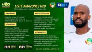 Les 24 Amazones U20 retenues pour la double confrontation face à l’Égypte sont officiellement connues. Le sélectionneur Ouzérou Abdoulaye, au cours de la conférence de presse tenue ce mercredi 28 janvier 2026 a dévoilé la liste des 24 joueuses qui prendront part à ces matchs face à l’Égypte comptant pour le 3ᵉ tour des éliminatoires de la Coupe du Monde féminine U20.