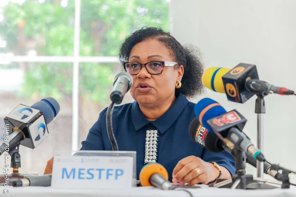 La cérémonie d’ouverture a été présidée conjointement par la ministre des Enseignements Secondaire, Technique et de la Formation Professionnelle, Madame Véronique Tognifodé, et le ministre des Petites et Moyennes Entreprises et de la Promotion de l’Emploi, Monsieur Modeste Tihounté Kérékou.