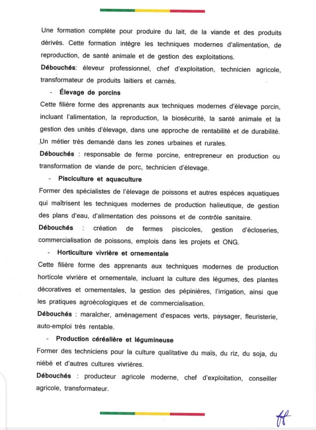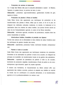 À travers ces nouvelles filières, le Gouvernement entend renforcer l’employabilité des jeunes, promouvoir l’auto-emploi et faire de l’agriculture un véritable levier de création de richesses et de développement durable pour l’économie nationale.
