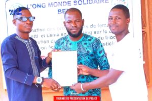 Sur place, l’équipe porteuse du projet a été reçue par l’ONG Monde Solidaire Bénin, dans le cadre d’une rencontre axée sur le renforcement des synergies autour de l’engagement des jeunes. Les échanges ont notamment eu lieu avec le Directeur exécutif de l’organisation, Yves Lokossou.