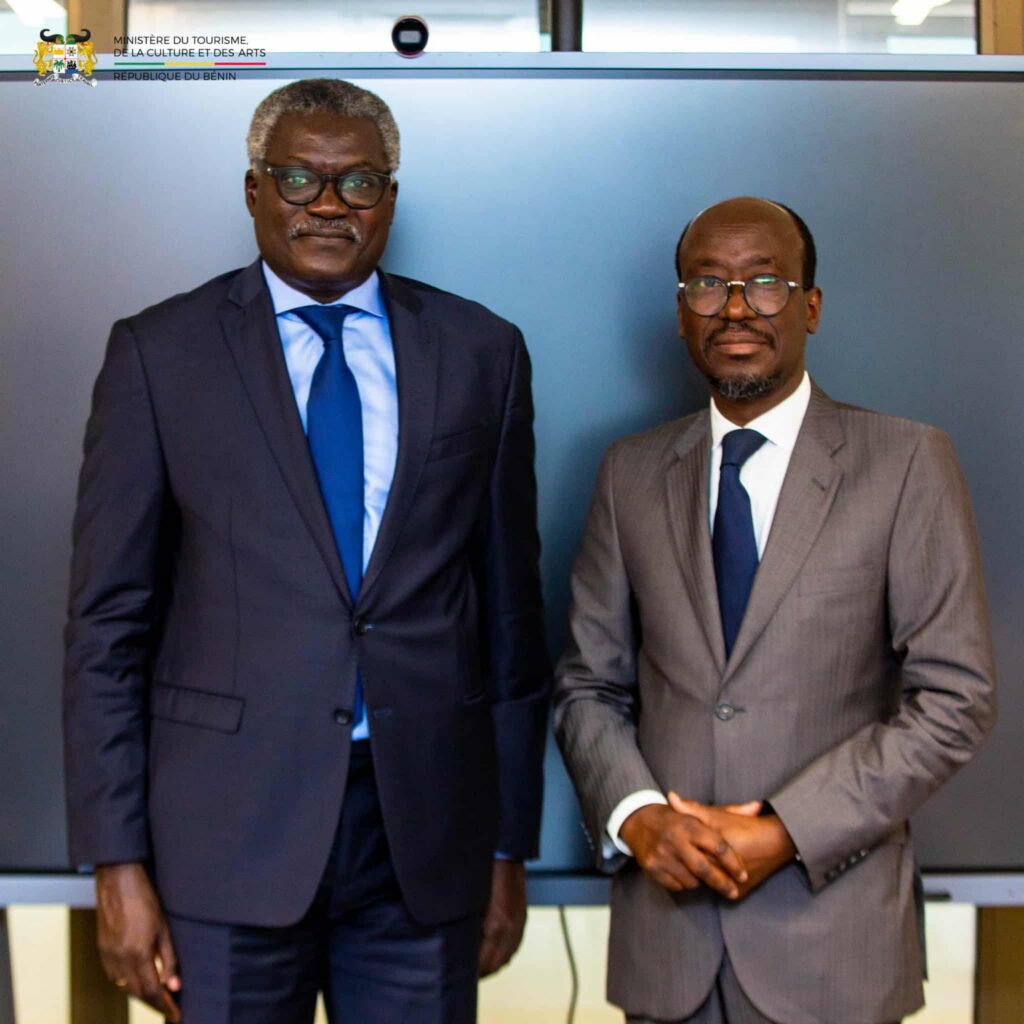 Le Ministre du Tourisme, de la Culture et des Arts du Bénin, Jean-Michel Abimbola, a reçu en audience, le mercredi 1ᵉʳ octobre 2025 à la Cité ministérielle de Cotonou, le représentant résident de la CEDEAO au Bénin, Amadou Diongue. Certains cadres du ministère ont également pris part à cette rencontre.