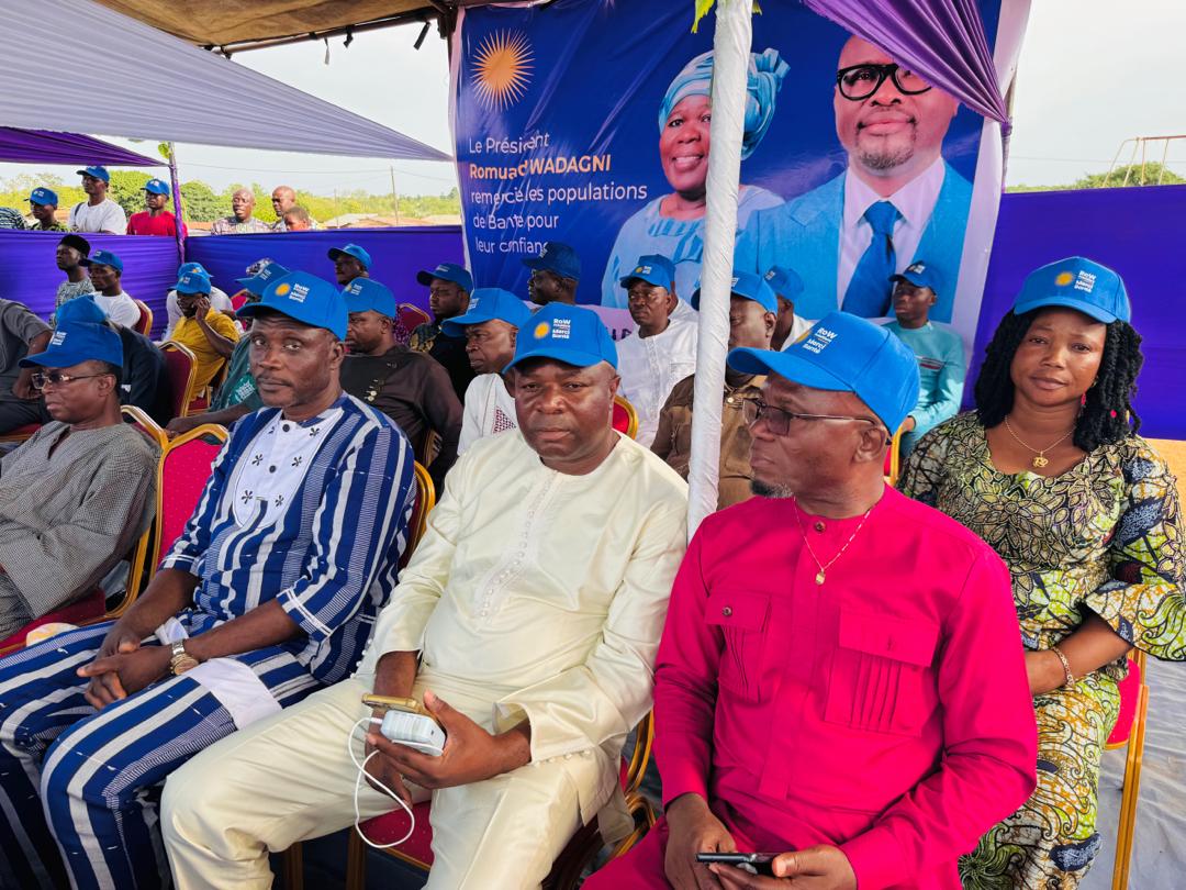 À l’initiative du colonel des Douanes Marcellin Laourou, Président de l’association du développement de la commune de Bantè, un meeting de reconnaissance s’est tenu sur le terrain de l’Ecole Primaire Publique de Bantè Centre, rassemblant élus, autorités locales, cadres, têtes couronnées, jeunes et femmes autour d’un même objectif : remercier la population pour son vote massif.