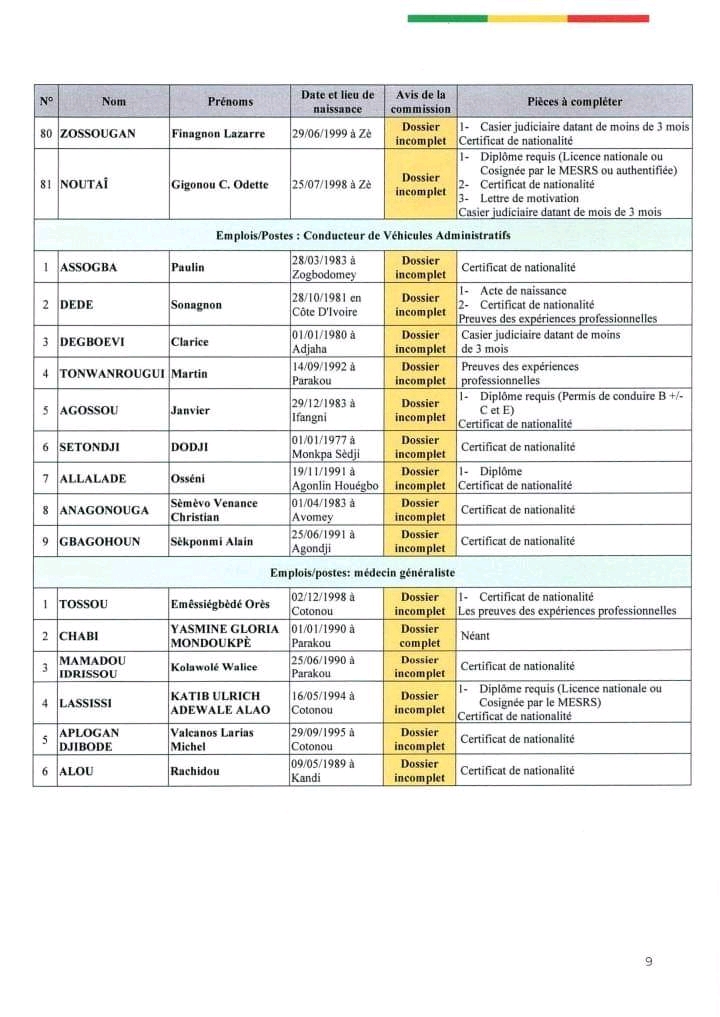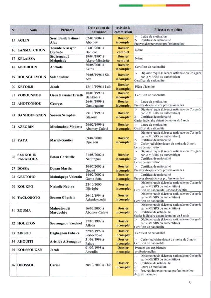 Si des dossiers sont jugés incomplets, les intéressés devront impérativement fournir les pièces manquantes (version physique) soit au secrétariat du SAMU-BENIN, soit par mail à l’adresse indiquée, avant le vendredi 4 avril 2025.